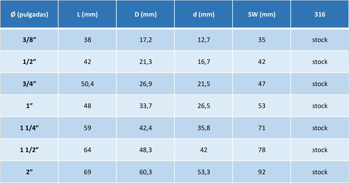 1 extremo con rosca hembra EN 10226-1 (ISO 7/1) y 1 extremo para soldar a tope