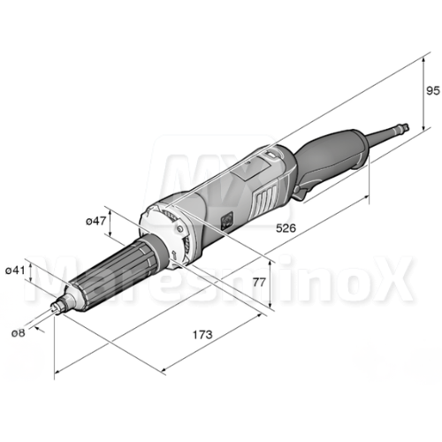 Rectificadora recta manejable y extremadamente potente para el trabajo en acero inoxidable con una elevada profundidad de penetración para trabajos de lijado y pulido difíciles.